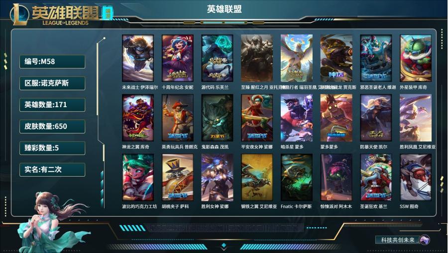 【可二次等级:497英雄数量:171皮肤数量:650神话数量:5炫彩数量:132限定皮肤:暗影沃里克,防暴天使凯尔,红桃杰克崔斯特,蓝色忧郁崔斯特未来战士伊泽瑞尔十周年纪念安妮,神凰行者瑞羽圣凰艾尼维亚,新卧虎藏龙贾克斯,源代码乐芙兰铁哥们儿奥拉夫,地狱之门卫士加里奥,魔幻卡牌崔斯特,血石领主弗拉基米尔,大天使长米迦勒凯尔,战场女武神凯尔,源计划:林易,恶魔男爵瑞兹,霸天零式赛恩,提莫:”约德尔人的一大步”,欧米伽小队幽灵特工,烈焰雄心崔丝塔娜,驯龙炮手崔丝